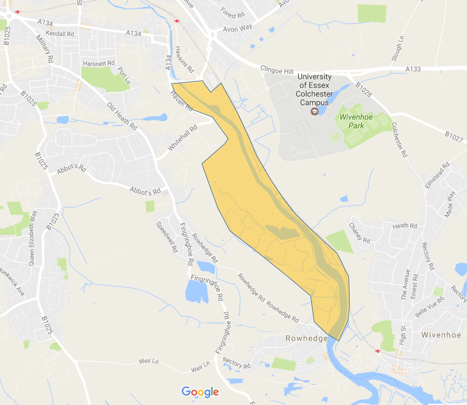 The nearest railway stations are Hythe (Essex) and Wivenhoe.